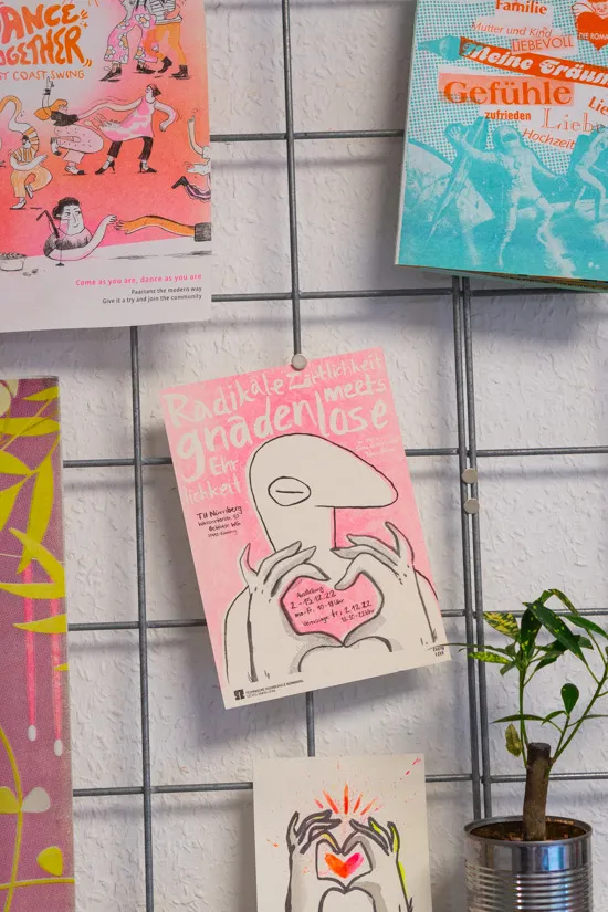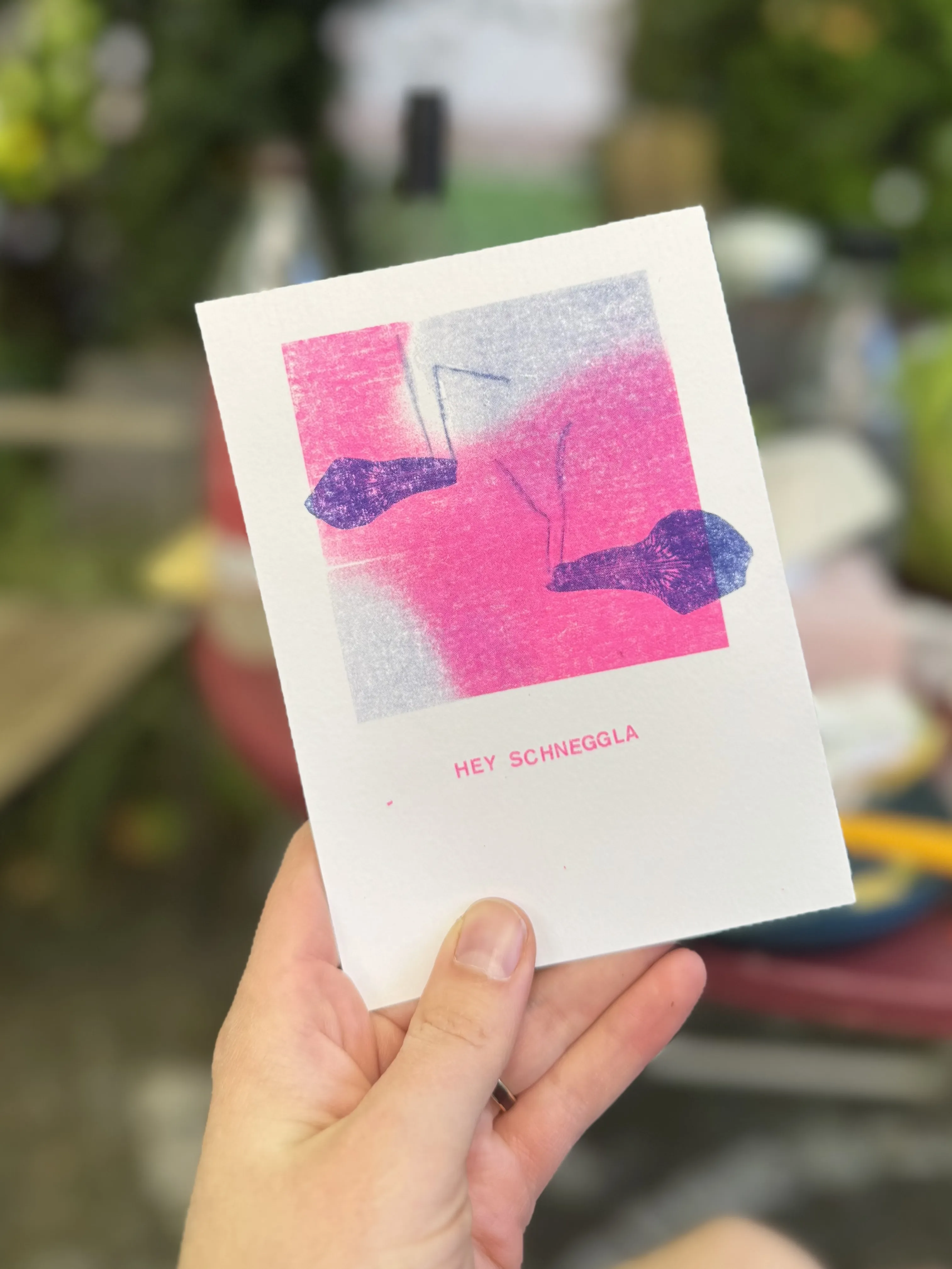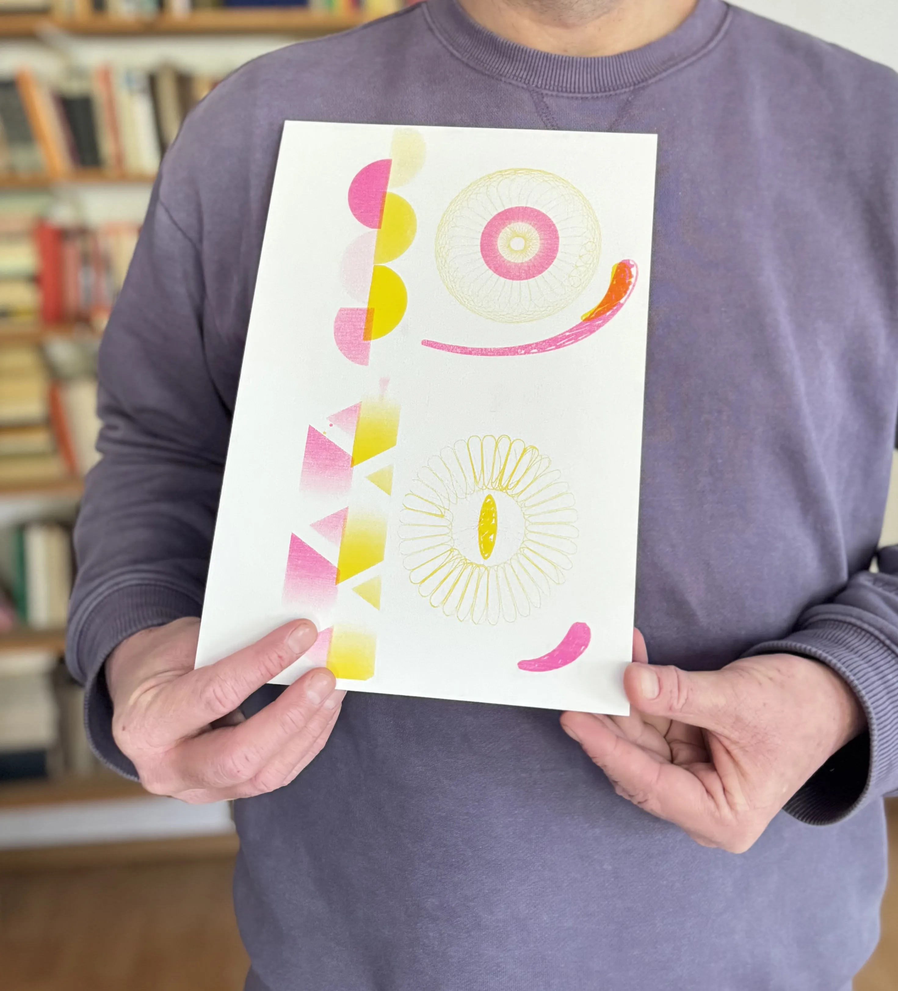 Wir lieben Farben, Papier, Tinte – und vor allem die unperfekte Schönheit von analoger, handgemachter Kunst. In unserem Studio experimentieren wir mit Riso- und Siebdruck, Collage, Zeichnung und Malerei. Dabei geht es nicht um Perfektion, sondern um Freude am Machen. Unser Studio ist ein Ort für alle: Für Menschen mit und ohne Vorerfahrung, für Neugierige, Kreative, Teams oder Einzelpersonen. Egal, ob du einen eigenen Print gestalten möchtest, Workshops suchst oder einfach durch unsere Artworks stöbern willst – wir freuen uns auf dich!